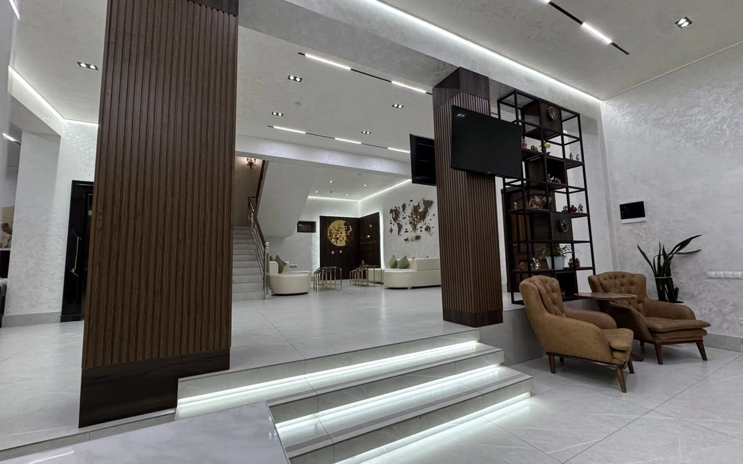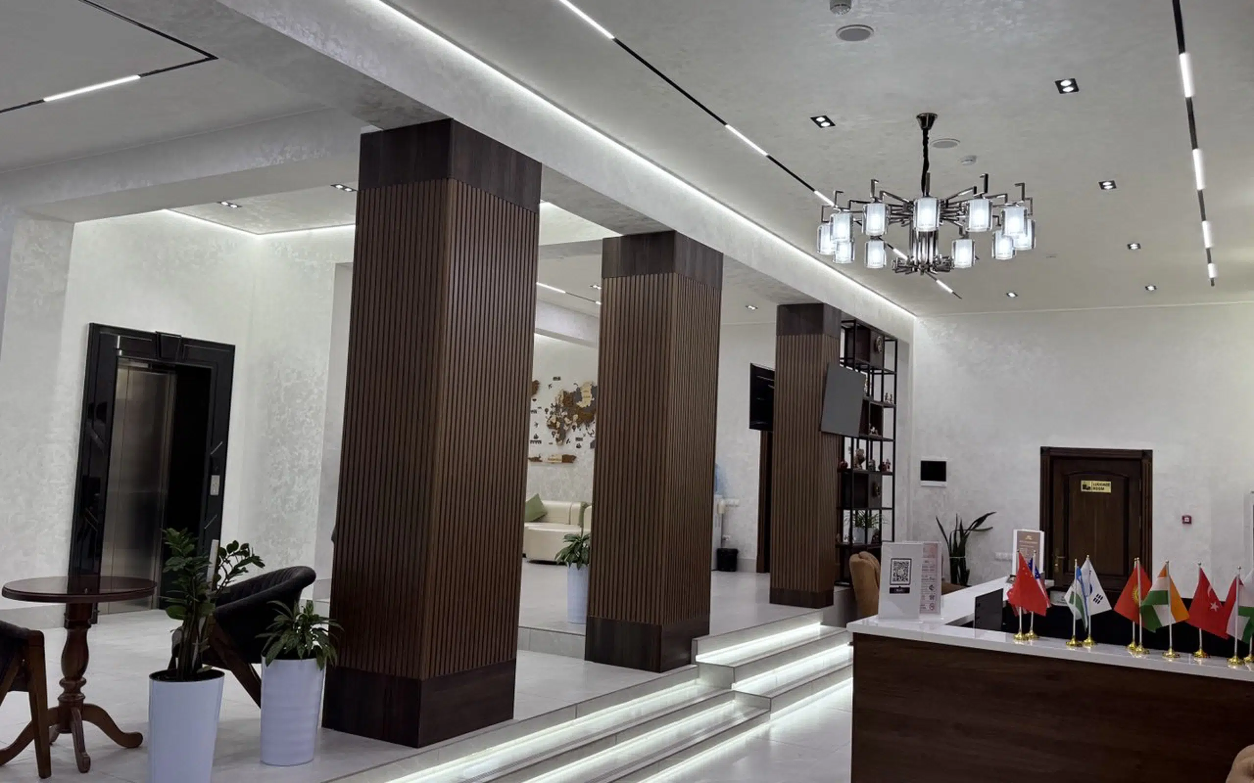 Отель «Khan Palace Hotel» представляет собой 4-этажное здание в классическом стиле. «Ташкентский международный аэропорт» имени Ислама Каримова находится в 10 км от гостиницы, Ташкентский местный аэропорт «Терминал 3» - в 4 км, Ташкентский Северный железнодорожный вокзал - в 6 км, Южный железнодорожный вокзал - в 10 км от гостиницы. Каждый гость может воспользоваться нашим вкусным завтраком, расположенным на 3-м этаже.... Подробнее